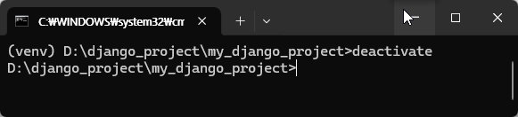 🎉 명령어를 실행한 후, 프롬프트 앞에 (venv)가 붙으면 성공적으로 가상환경에 들어온 것입니다!