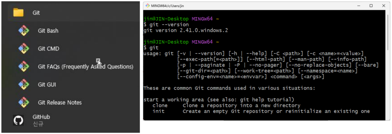 5. 설치가 완료되면, "Git Bash" 또는 "Git CMD"를 실행하여 정상적으로 설치되었는지 확인합니다.